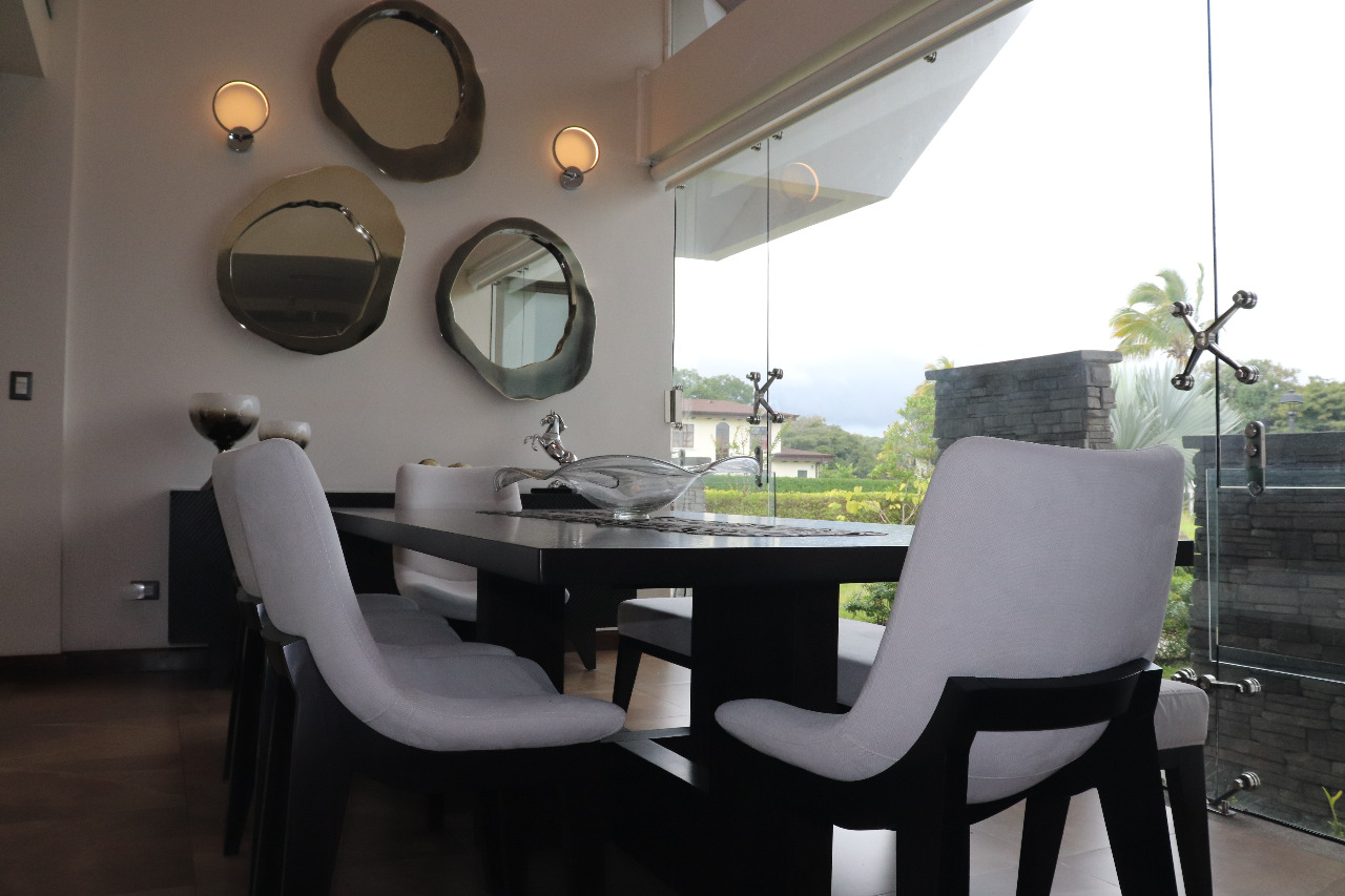 ¿Qué tal si te atrevés a hacer algo distinto para personalizar tu ambiente? Hay cambios espectaculares cuando nos atrevemos a usar elementos diferentes. Desde el juego de espejos con formas orgánicas en una pared, la escogencia de muebles cómodos y modernos, y la utilización de colores claros. ¡Este comedor tuvo un cambio radical!