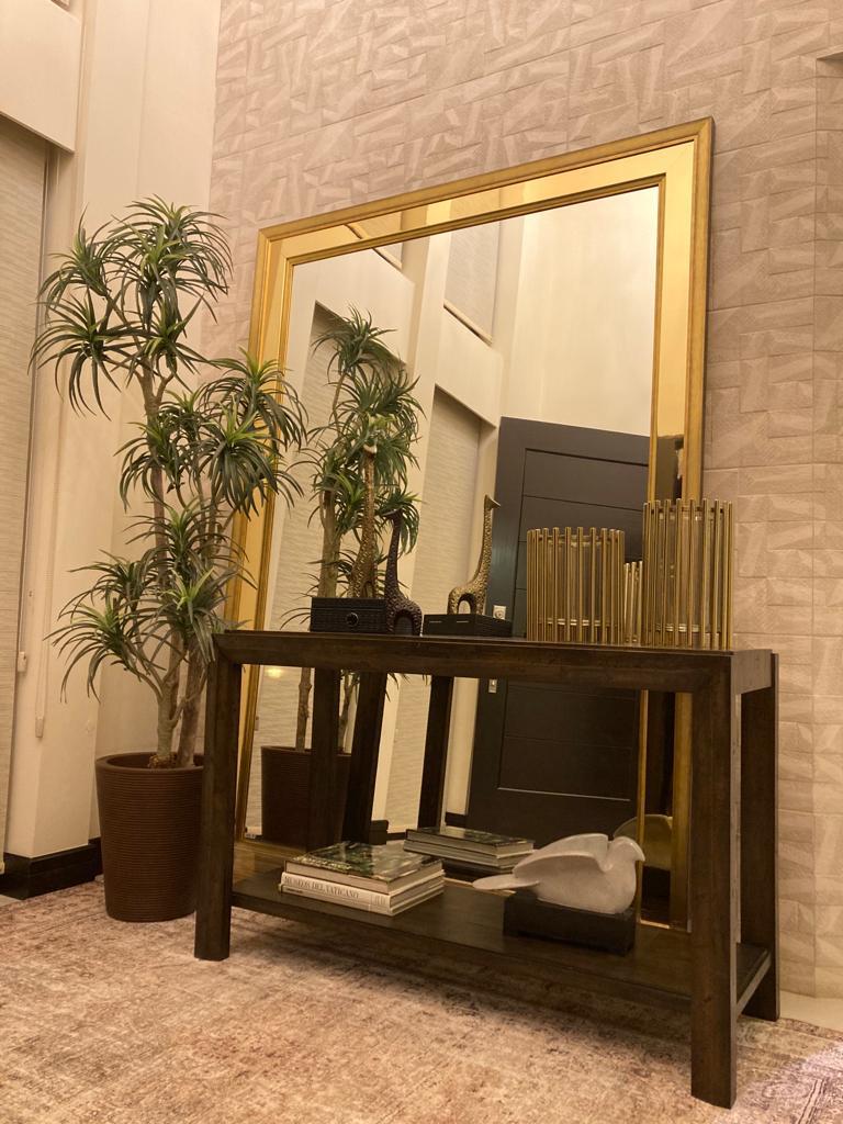 Este vestíbulo quedó impactante con ese espejo de gran dimensión, que le brinda amplitud y luz.